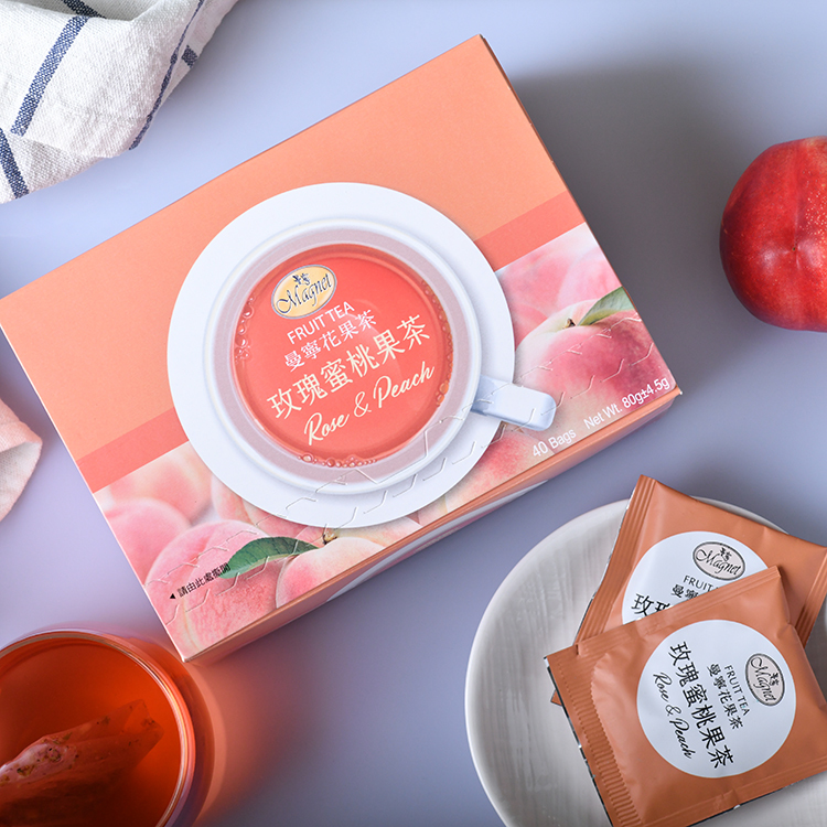 Rose & Peach Fruit Tea is perfectly blended with herbs, fruits and fruit extracts,