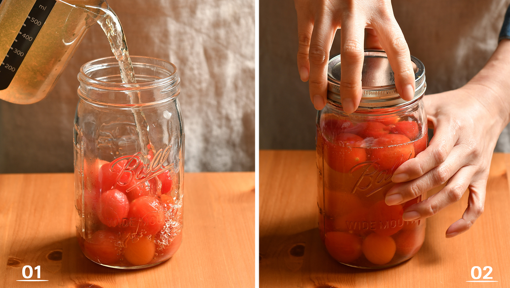 3. 將小番茄與玫瑰糖醋汁倒入乾燥容器中,密封冷藏2天後即可享用。