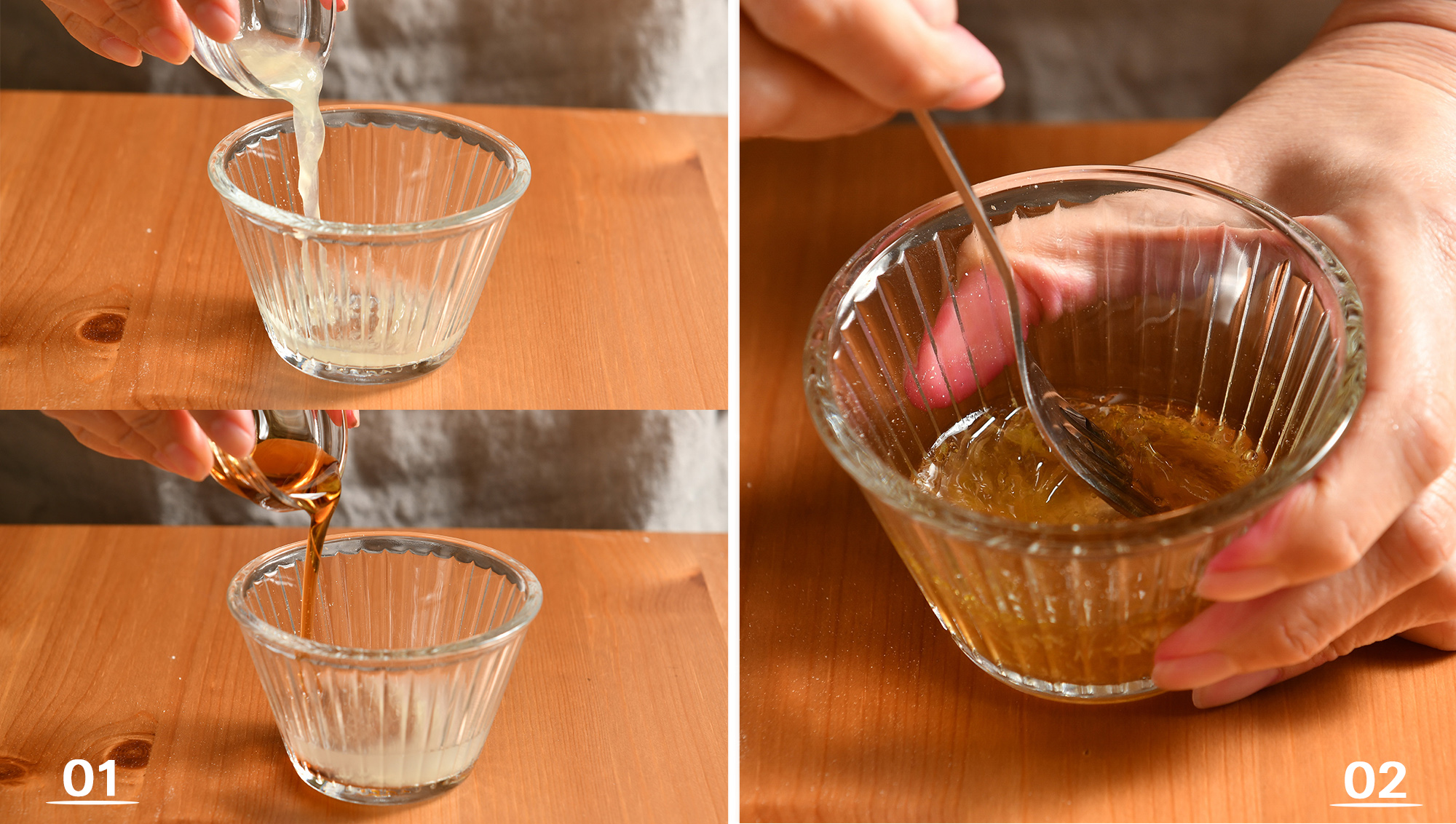 1. 將玫瑰油醋汁所有材料混合、攪拌均勻。