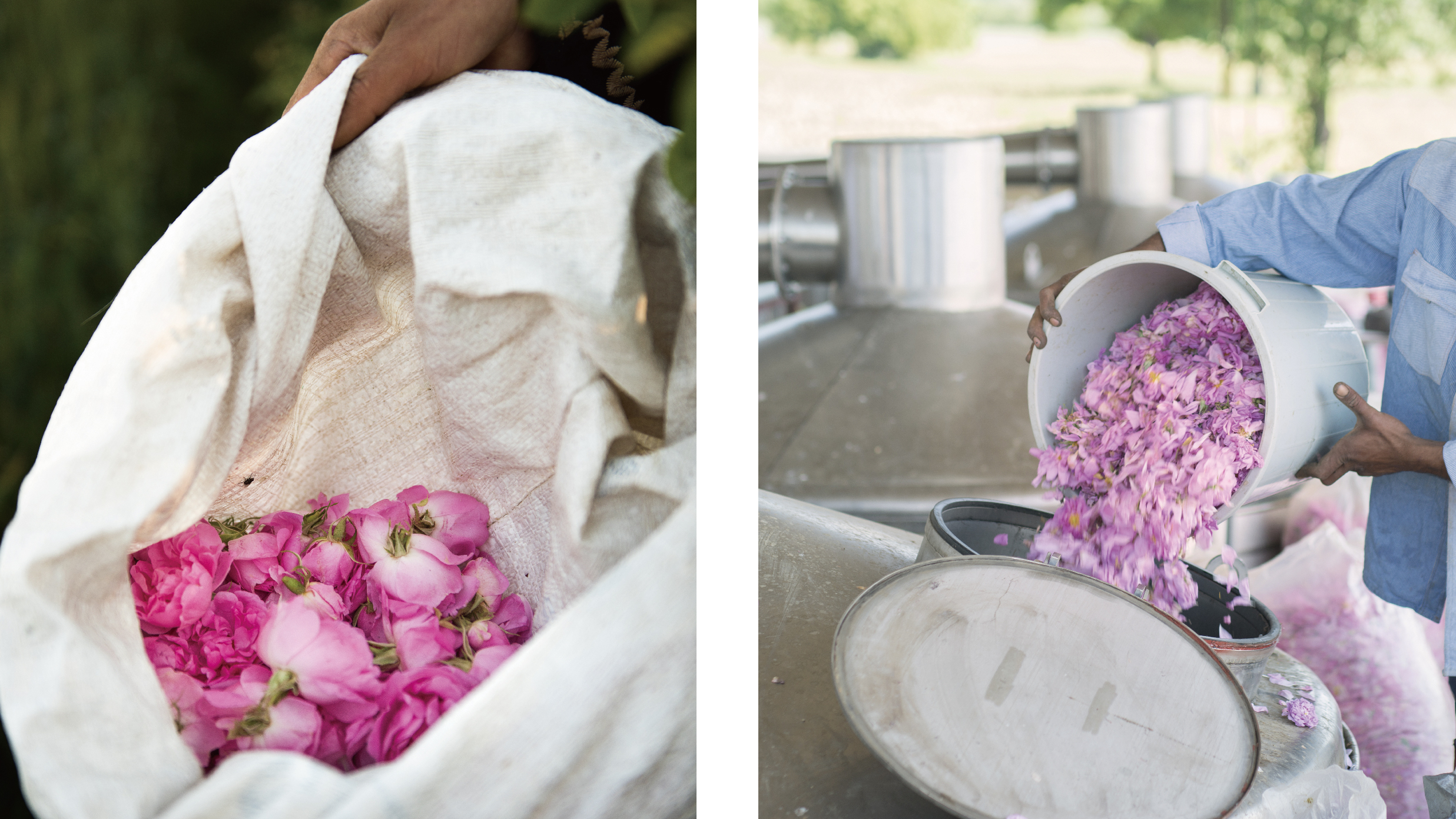 イランのケルマーン州にあるLalehzar山脈、海抜3000メートルの高地で栽培されたオーガニックダマスクローズを採用しております。特別な環境と気候で育てられた、香り豊かなローズは化学肥料と防虫剤を一切使用しておりません