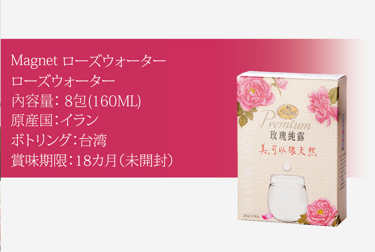 Magnet ローズウォー ターは栽培から、収穫、蒸留、ボトリングまで、オーガニックルールに沿っております。アルコール、防腐剤、着色料や香料など完全無添加です。