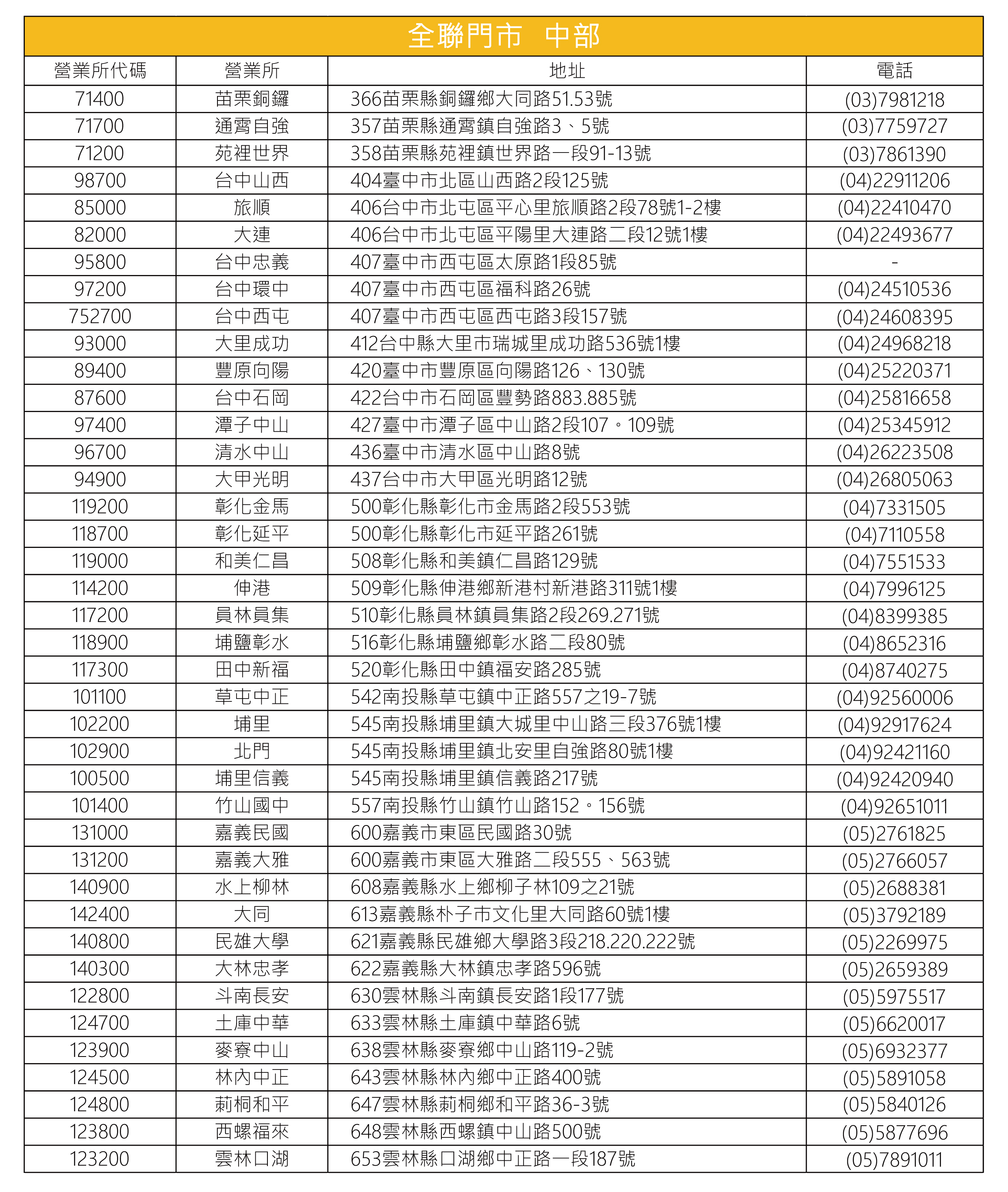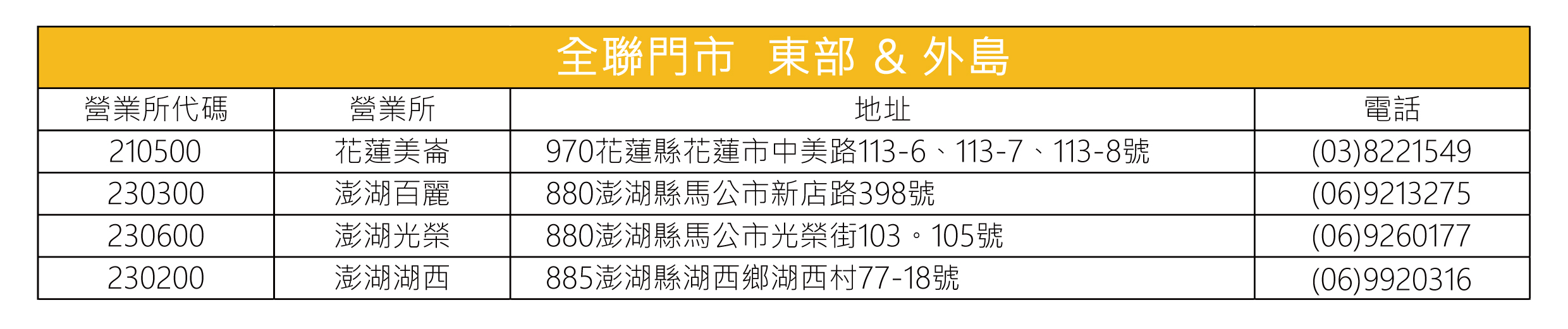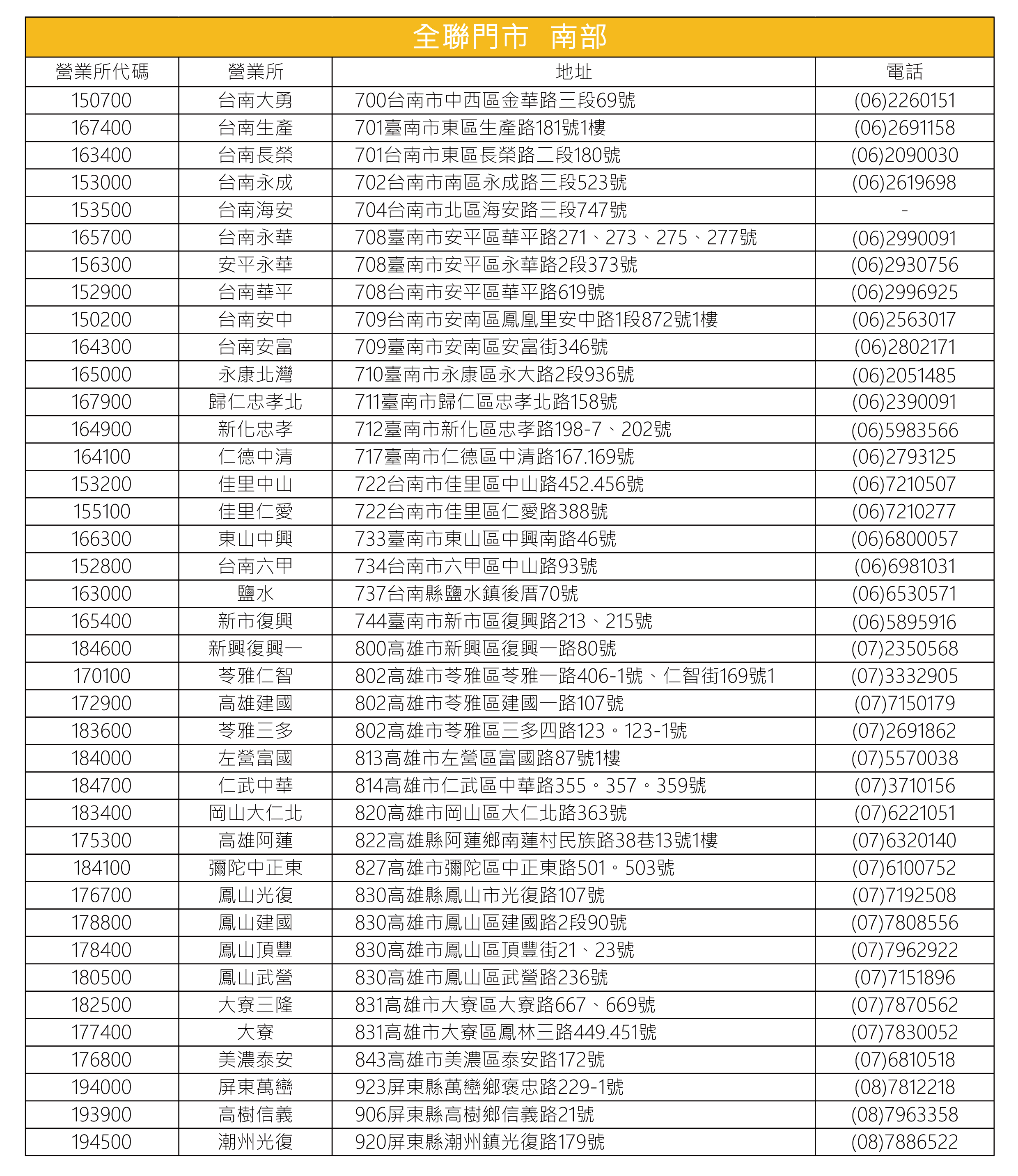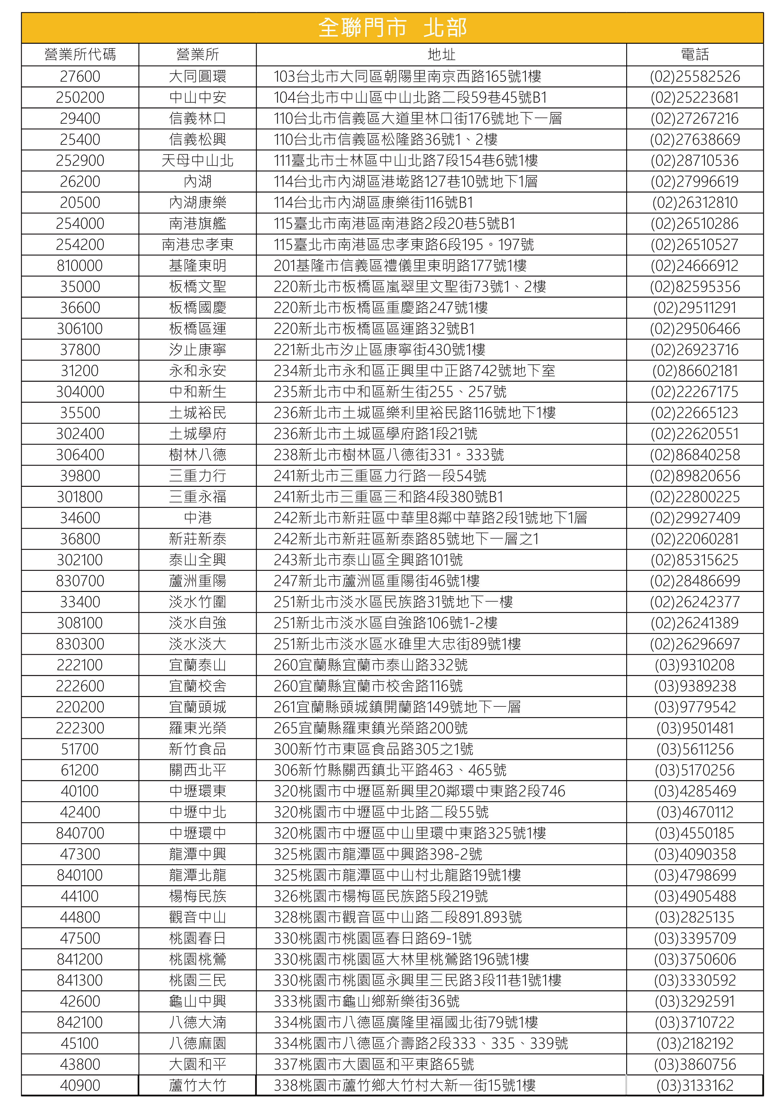 全聯販售門市據點