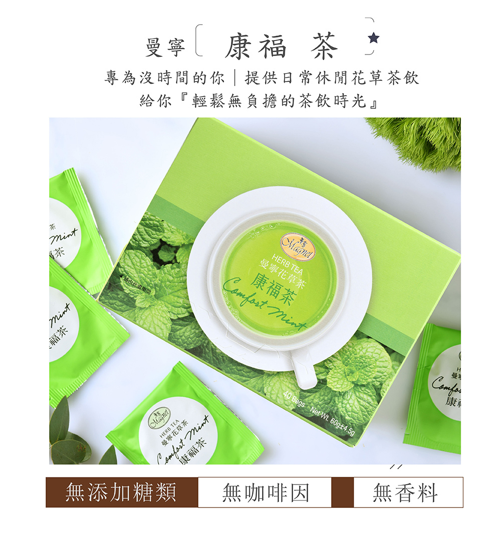 ◆ 清新沁涼的薄荷及帶有特別香氣的檸檬草,加上微甜甘草根,可以幫助消化、芬芳口氣,是餐後最佳的飲品選擇。