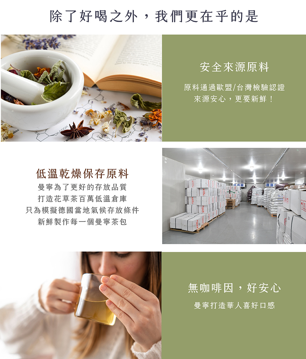 ◆ 純淨花草成分、無添加人工添加物、無咖啡因