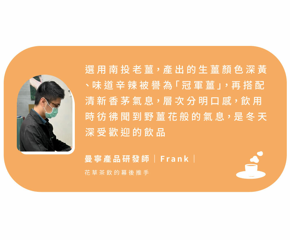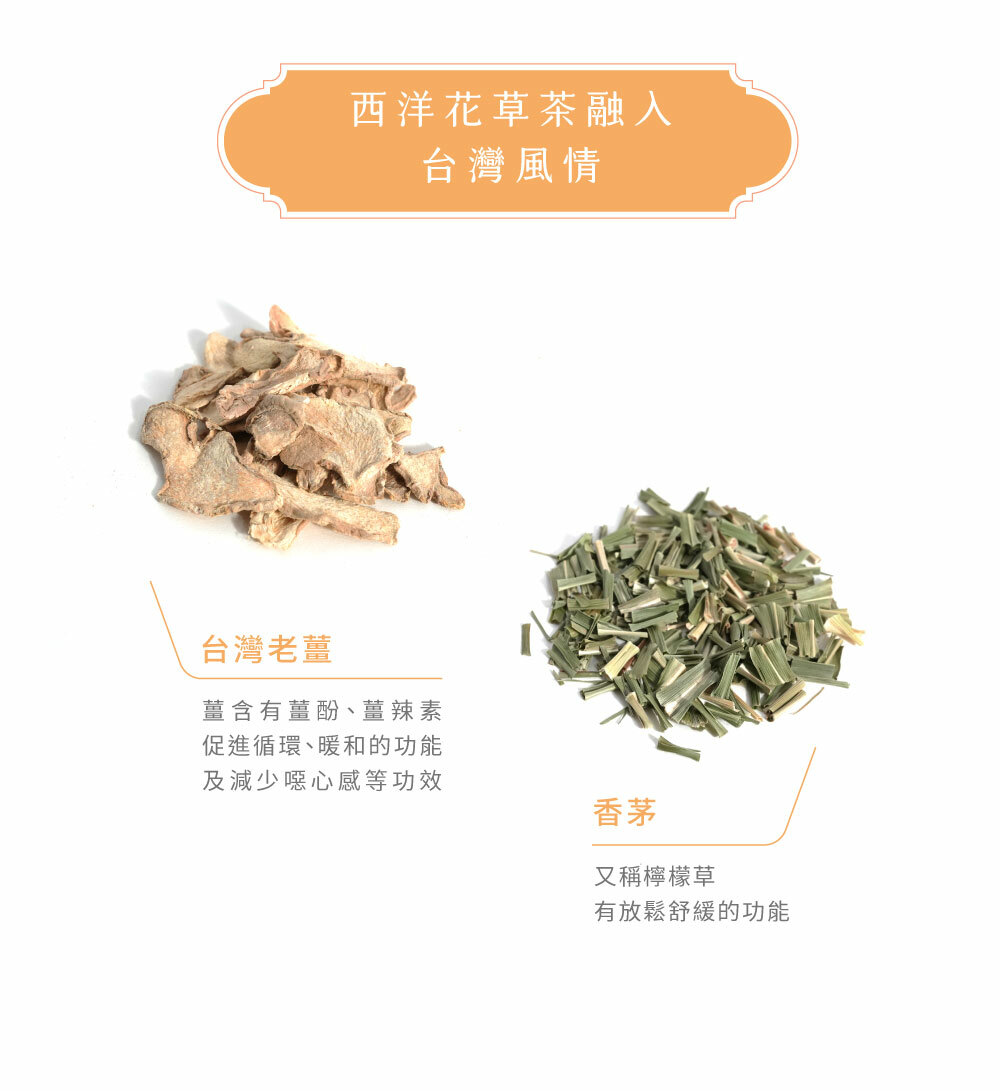 1.來自南投名間鄉的冠軍薑與西洋花草茶和諧調配