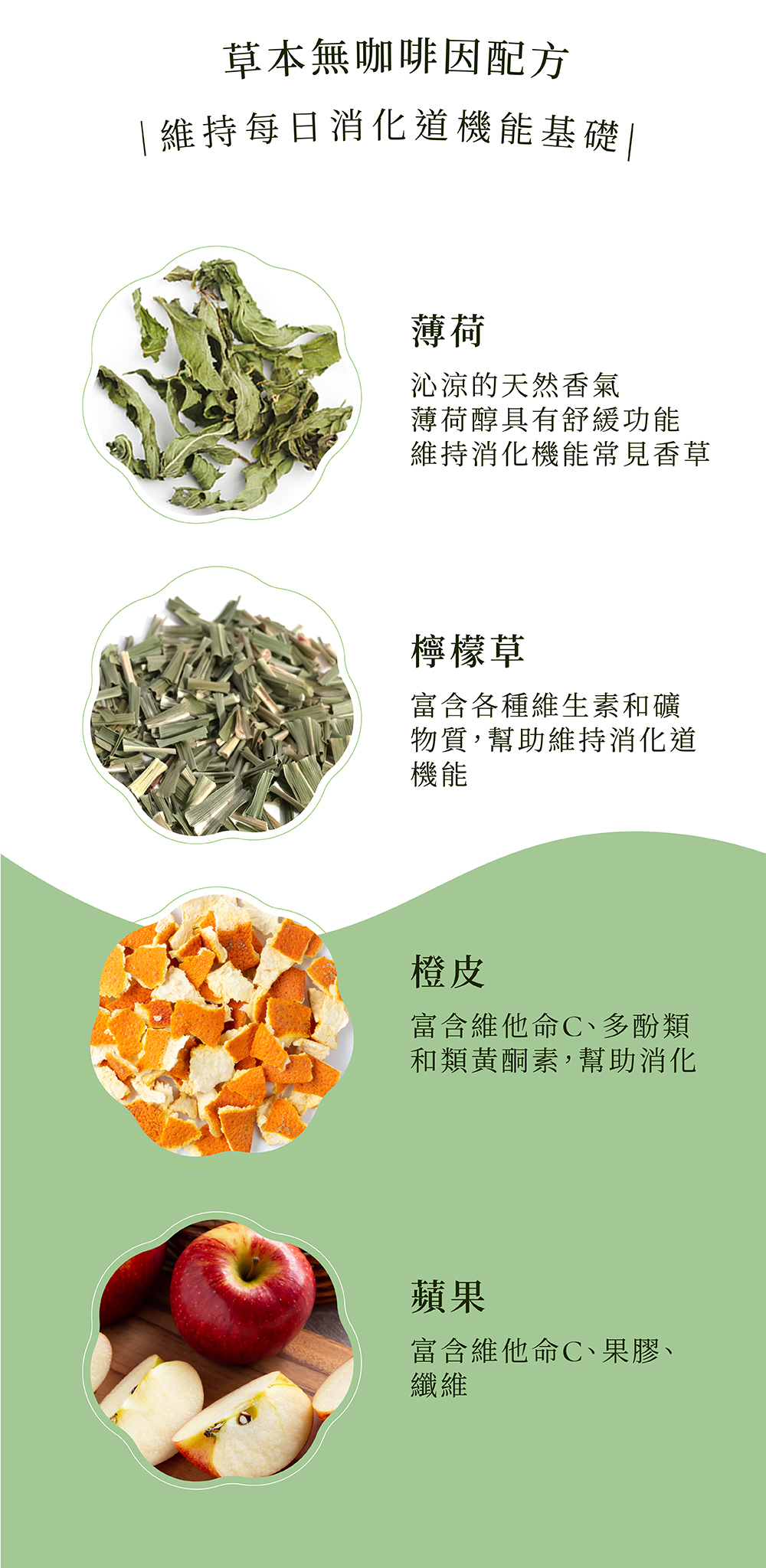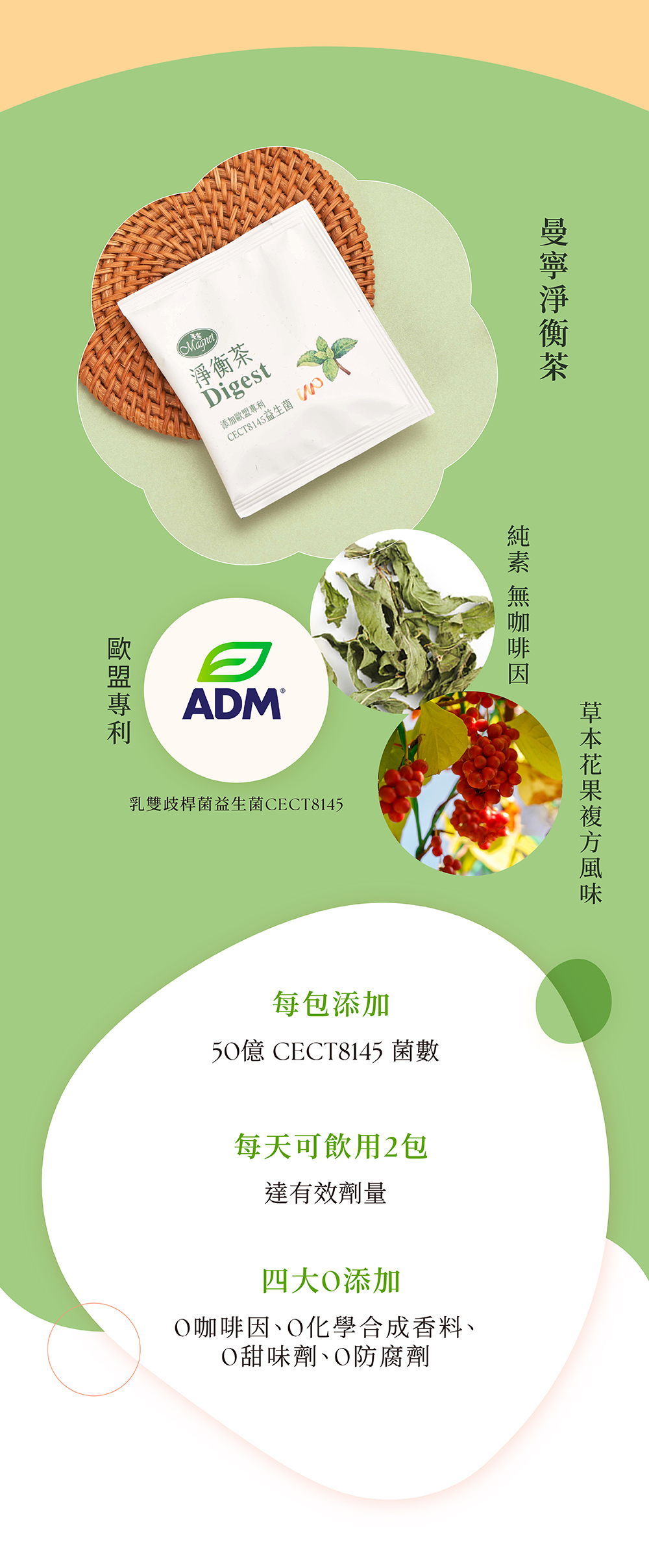 沖泡後散發清新亮的薄荷與柑橘香氣,明亮尾韻帶有蘋果香甜,添加歐盟專利 CECT8145益生菌