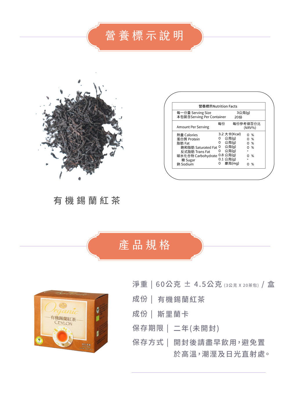 成 分:有機錫蘭紅茶