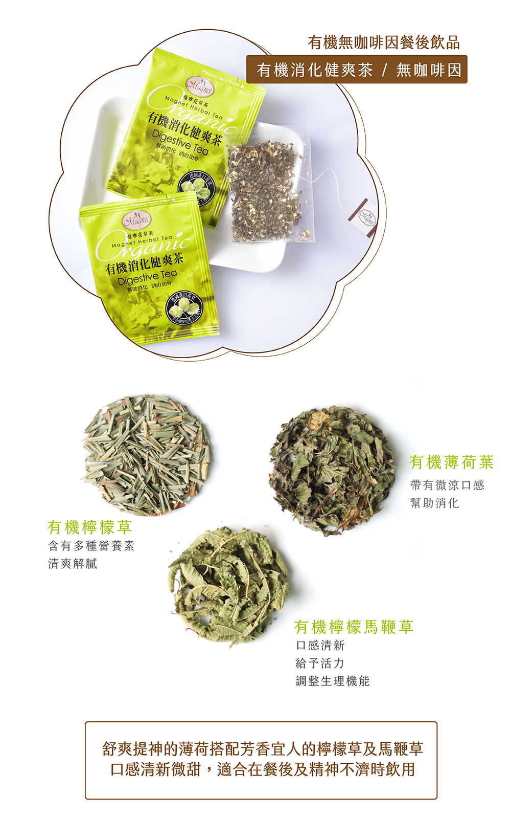 成 分(原產地) :有機薄荷葉、有機甘草根、有機檸檬草、有機馬鞭草(德國)
