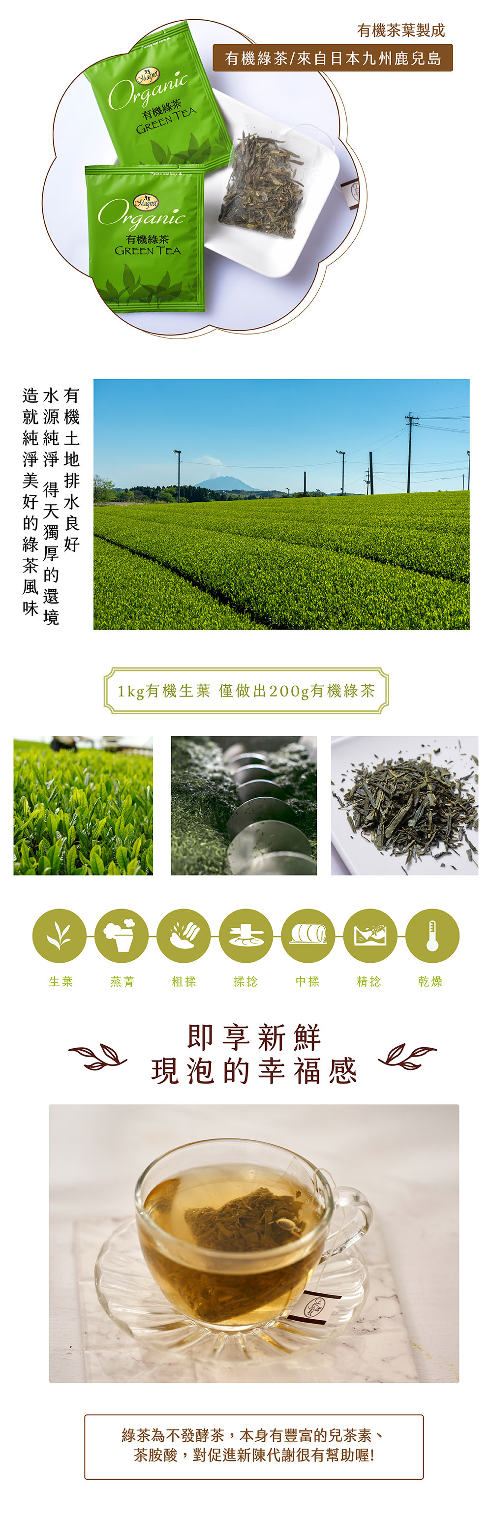 成 分(原產地) :有機綠茶(日本九州鹿兒島縣)