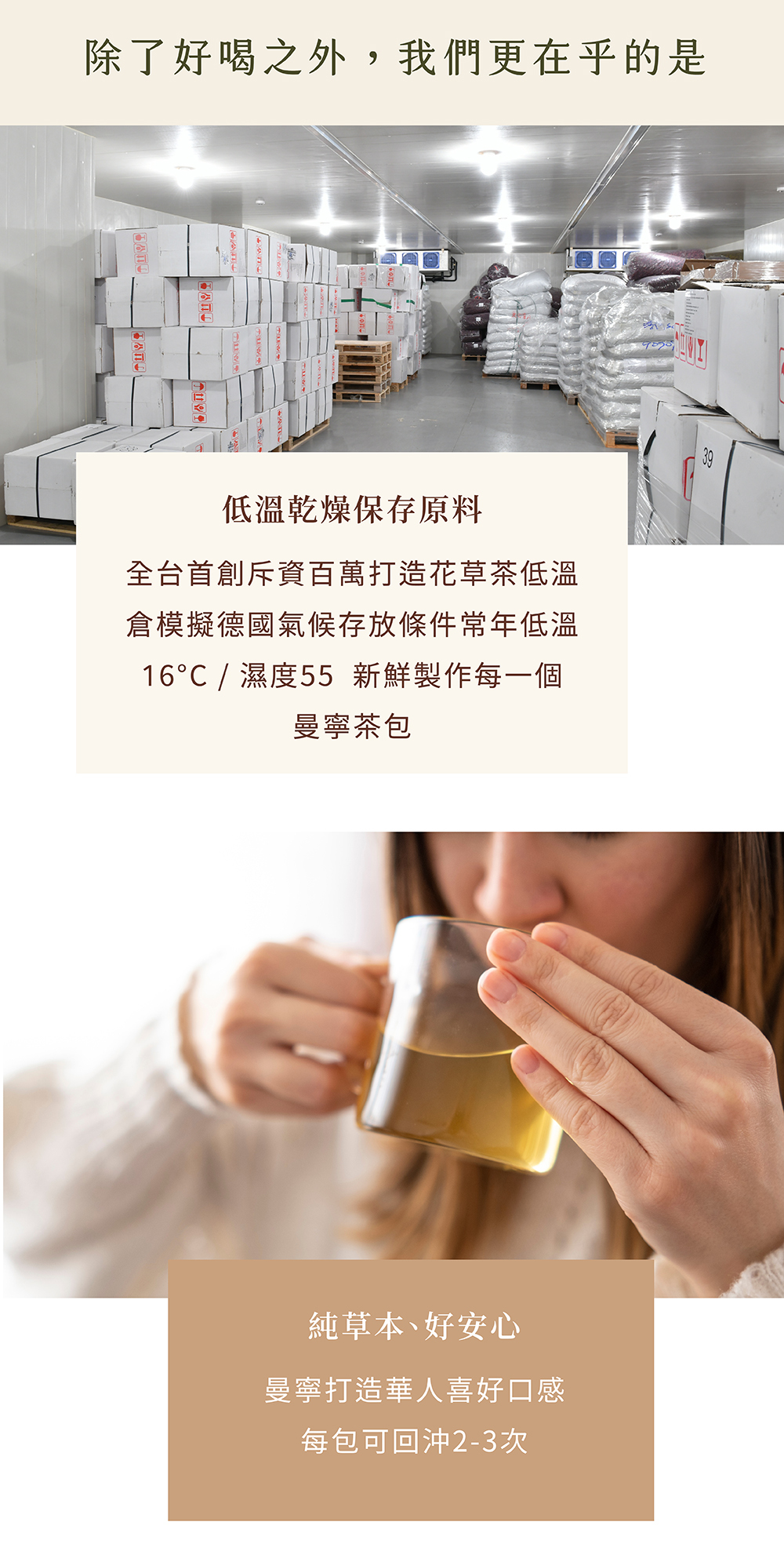 成份(原產地):有機洋甘菊、有機菩提、有機薰衣草、有機薄荷葉、有機甘草根(德國)