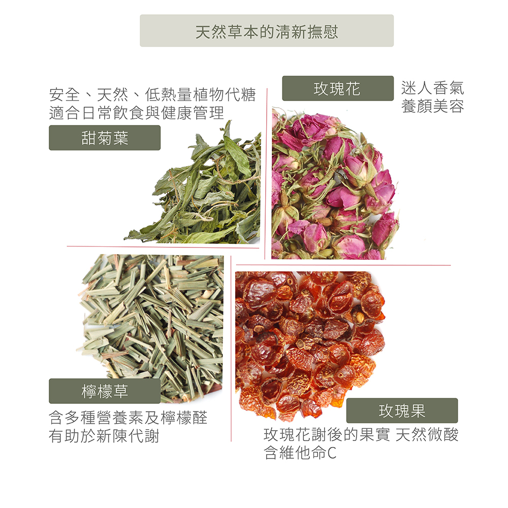 成 分:玫瑰、檸檬草、玫瑰果、香料、甜菊葉