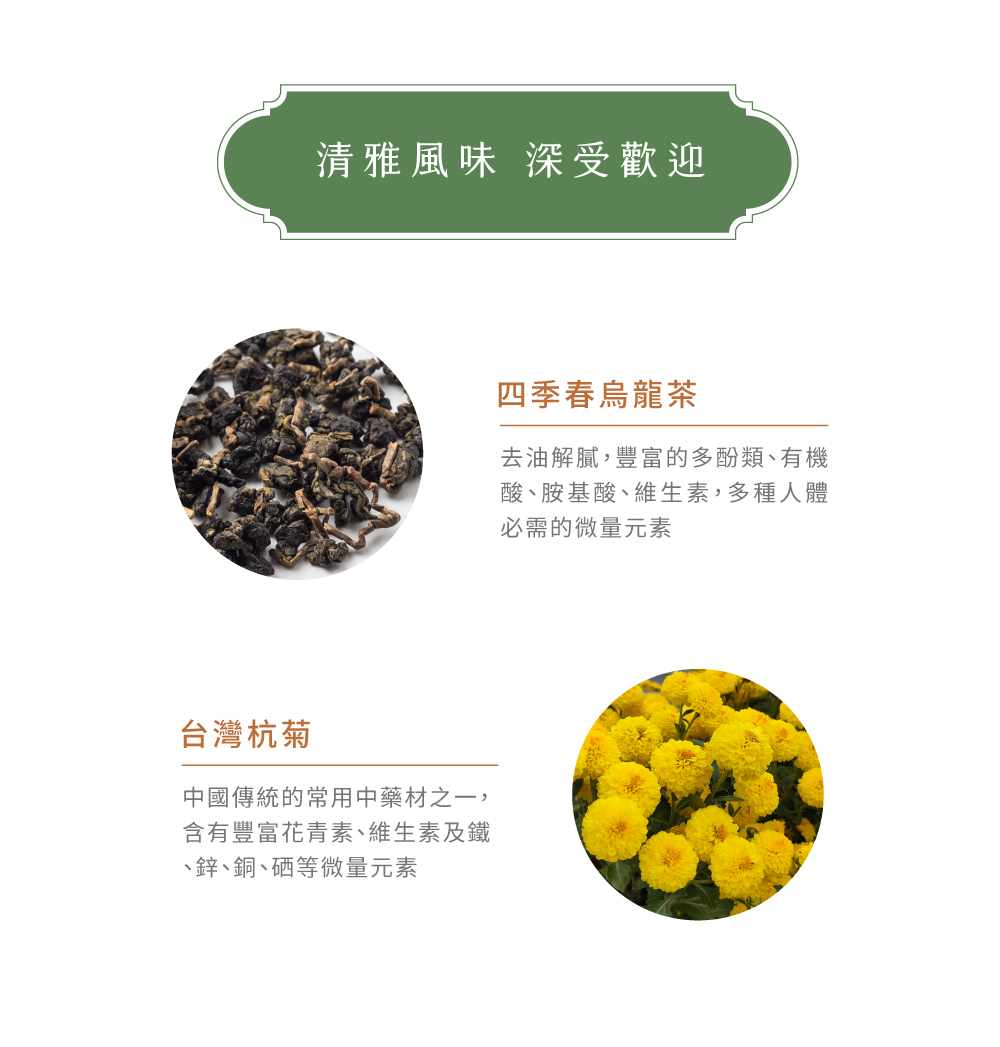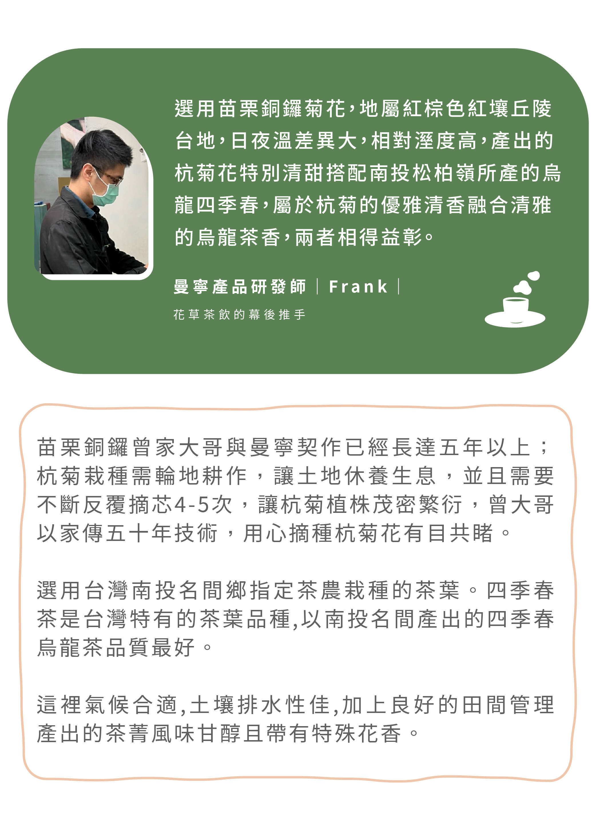 1.苗栗銅鑼的黃色杭菊搭配南投名間鄉的四季烏龍茶