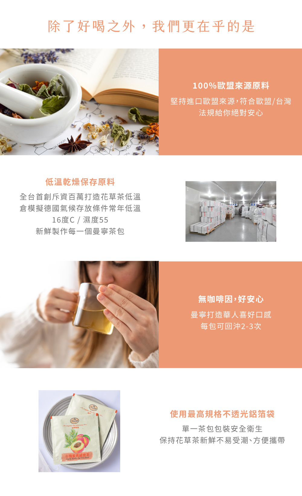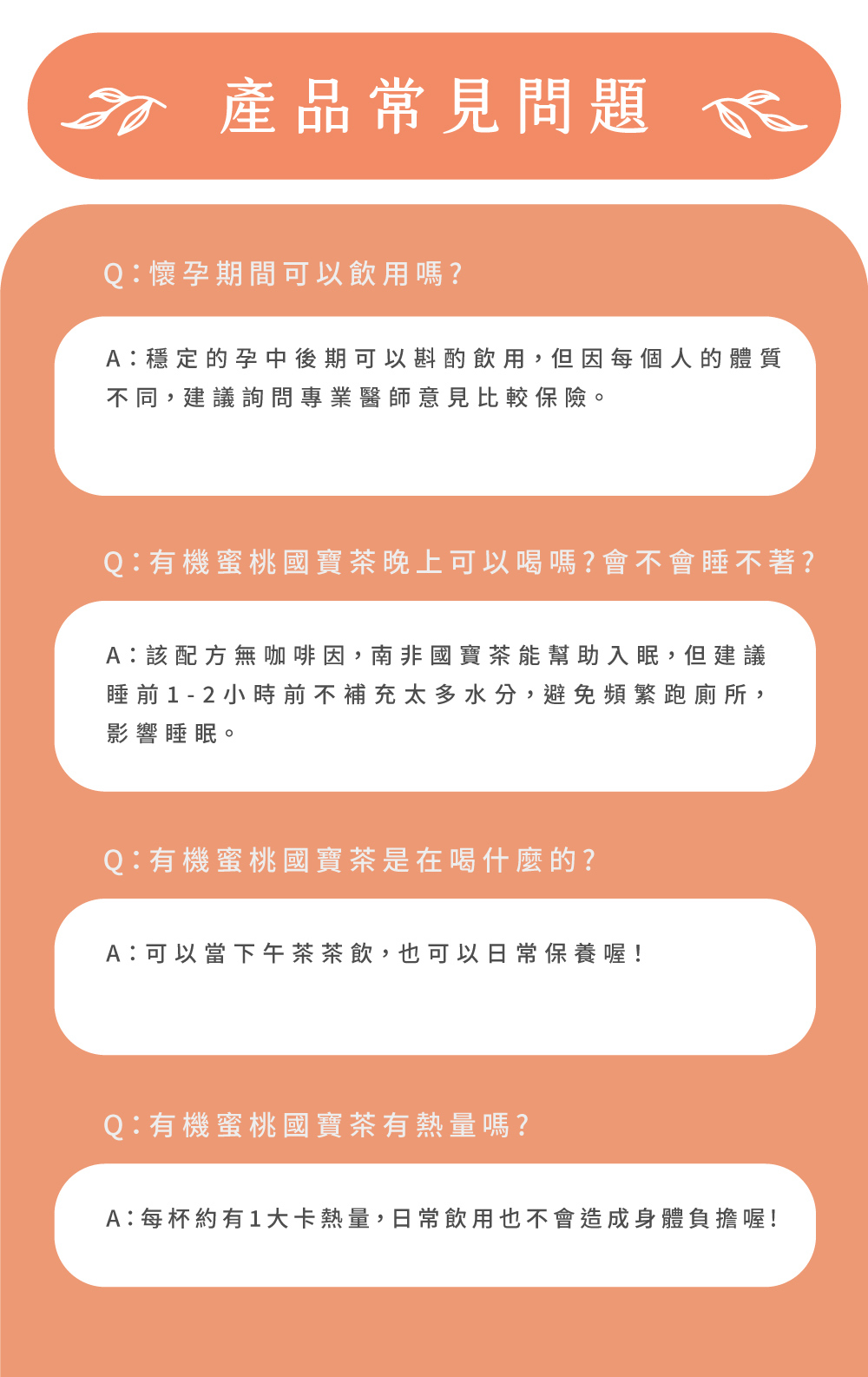 養生聞名的南非國寶茶,搭配上清甜多汁的蜜桃香,再添加一點天然植物代糖-甜菊葉,成就微甜韻味與豐富層次,除了養生更要好喝,為每日健康打好基礎