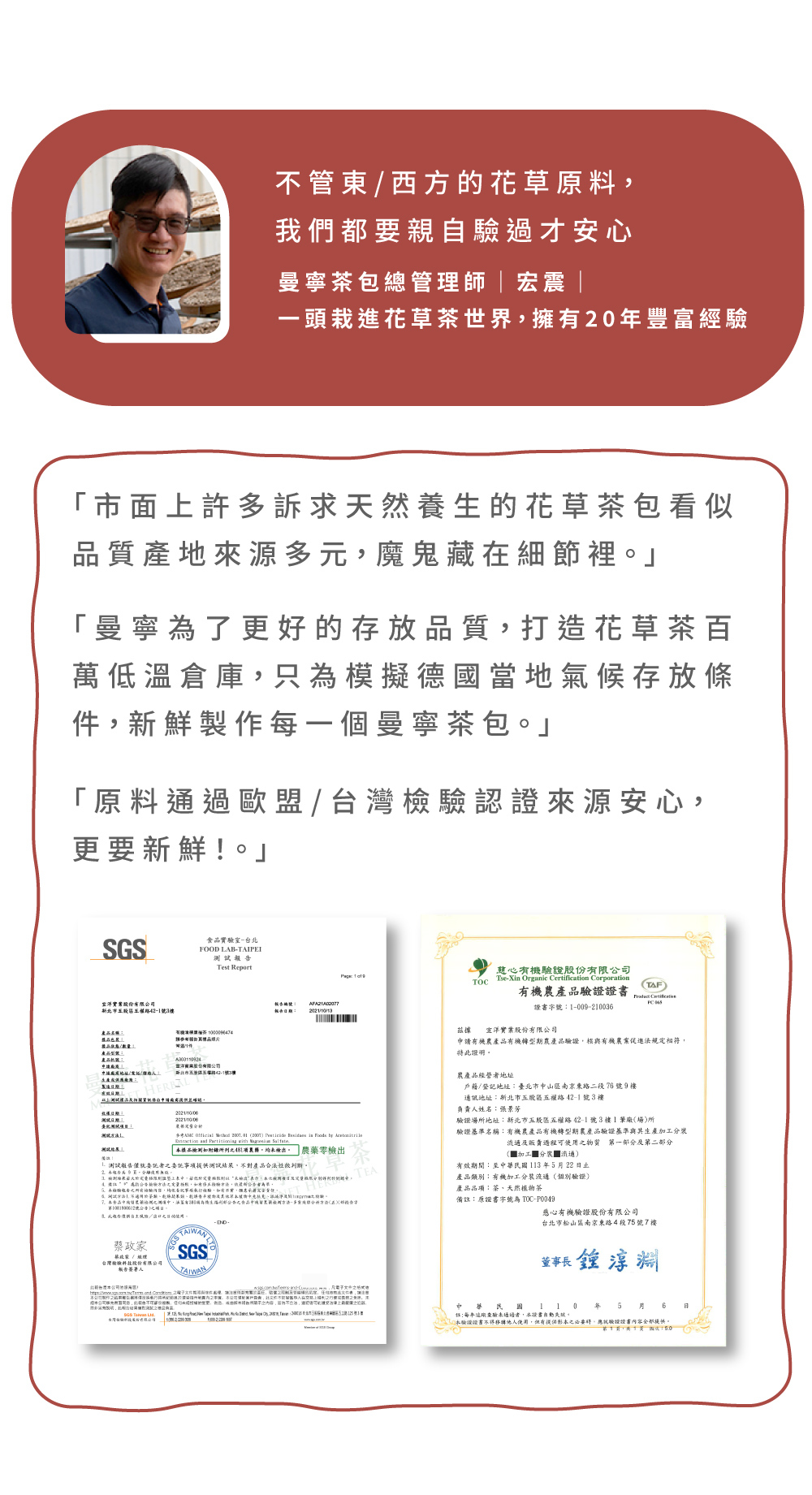 與德國供應商合作開發,嚴選有機花草原料,取得慈心有機驗證(股)公司之有機驗證