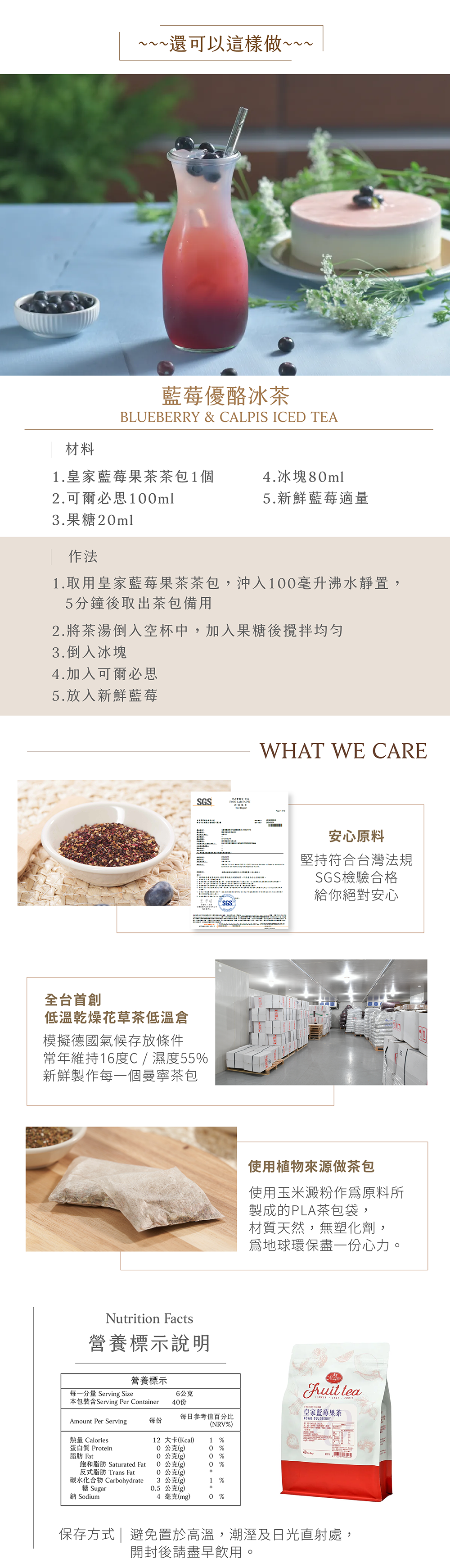 成分: 洛神葵、黑莿莓葉、蘋果、菊苣根、香料、檸檬酸、橘皮、藍莓、甘草根