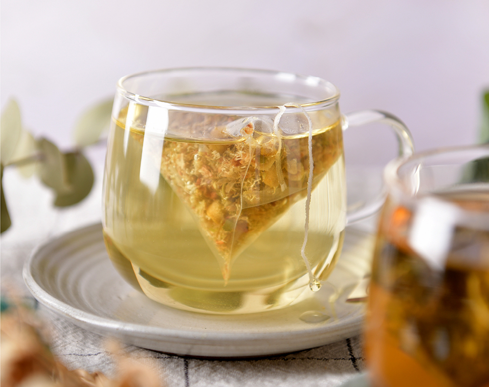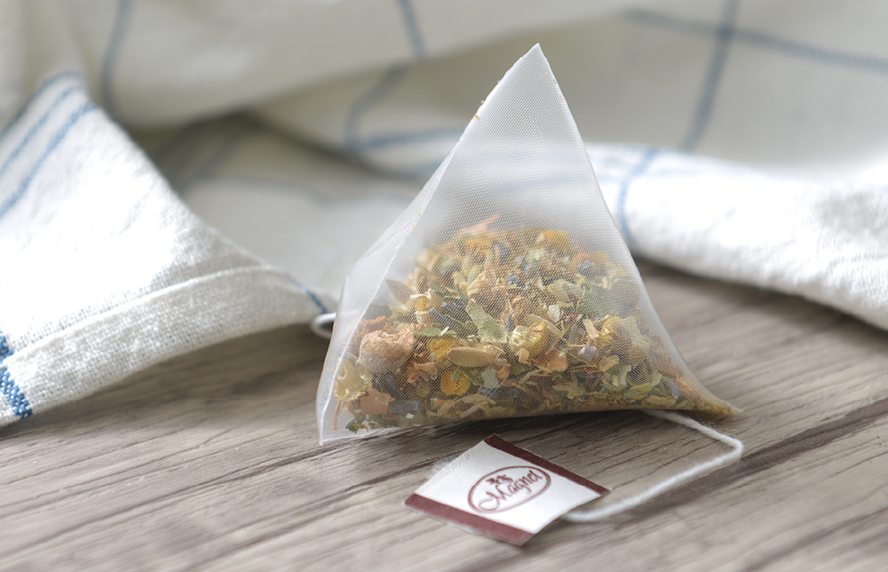 選用來自日本產地製造,以玉米澱粉為原料,是「不含塑膠」的生質材料PLA三角立體茶包。